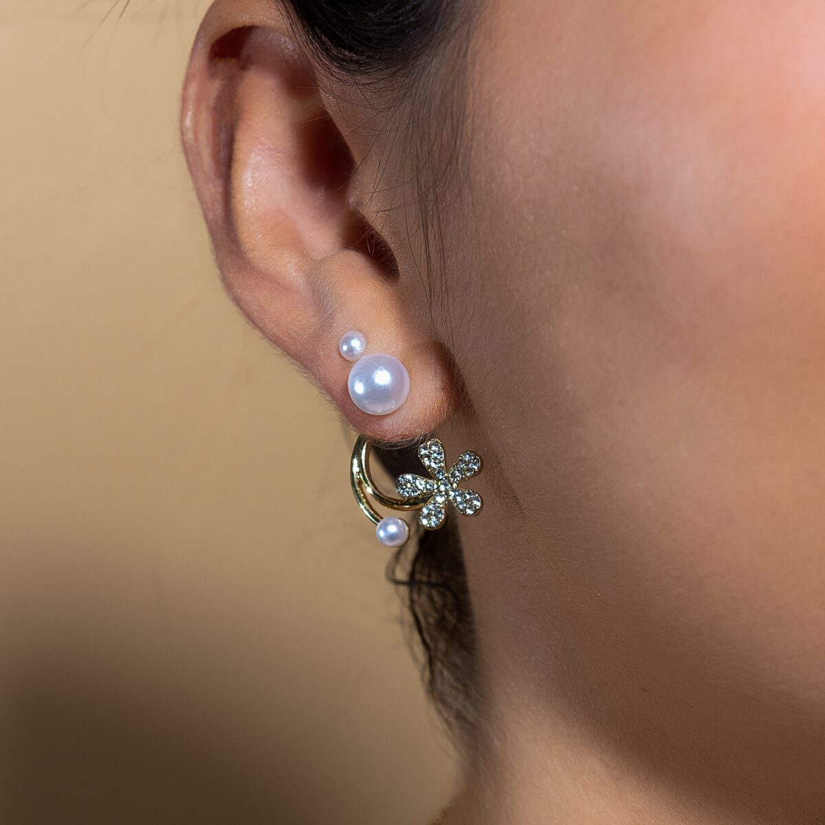 Aretes en forma de cometa fabricados con oro laminado de 18k y adornados con zirconias.